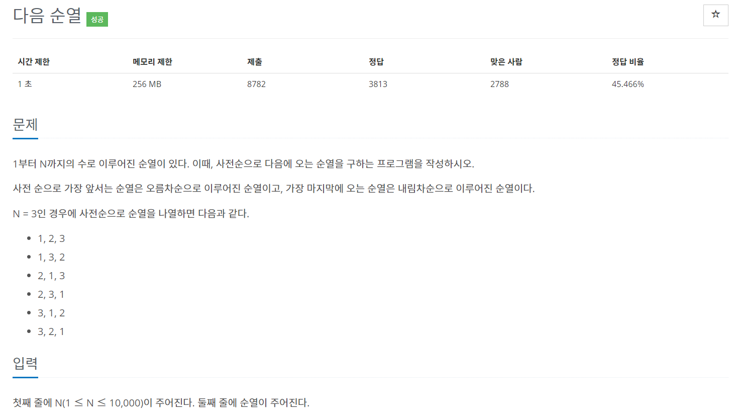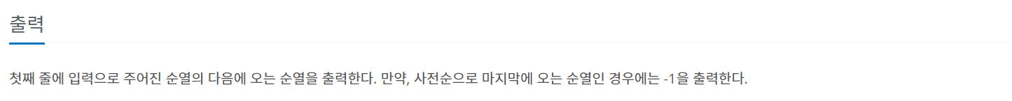 첫째 줄에 입력으로 주어진 순열의 다음에 오는 순열을 출력한다. 만약, 사전순으로 마지막에 오는 순열인 경우에는 -1을 출력한다.