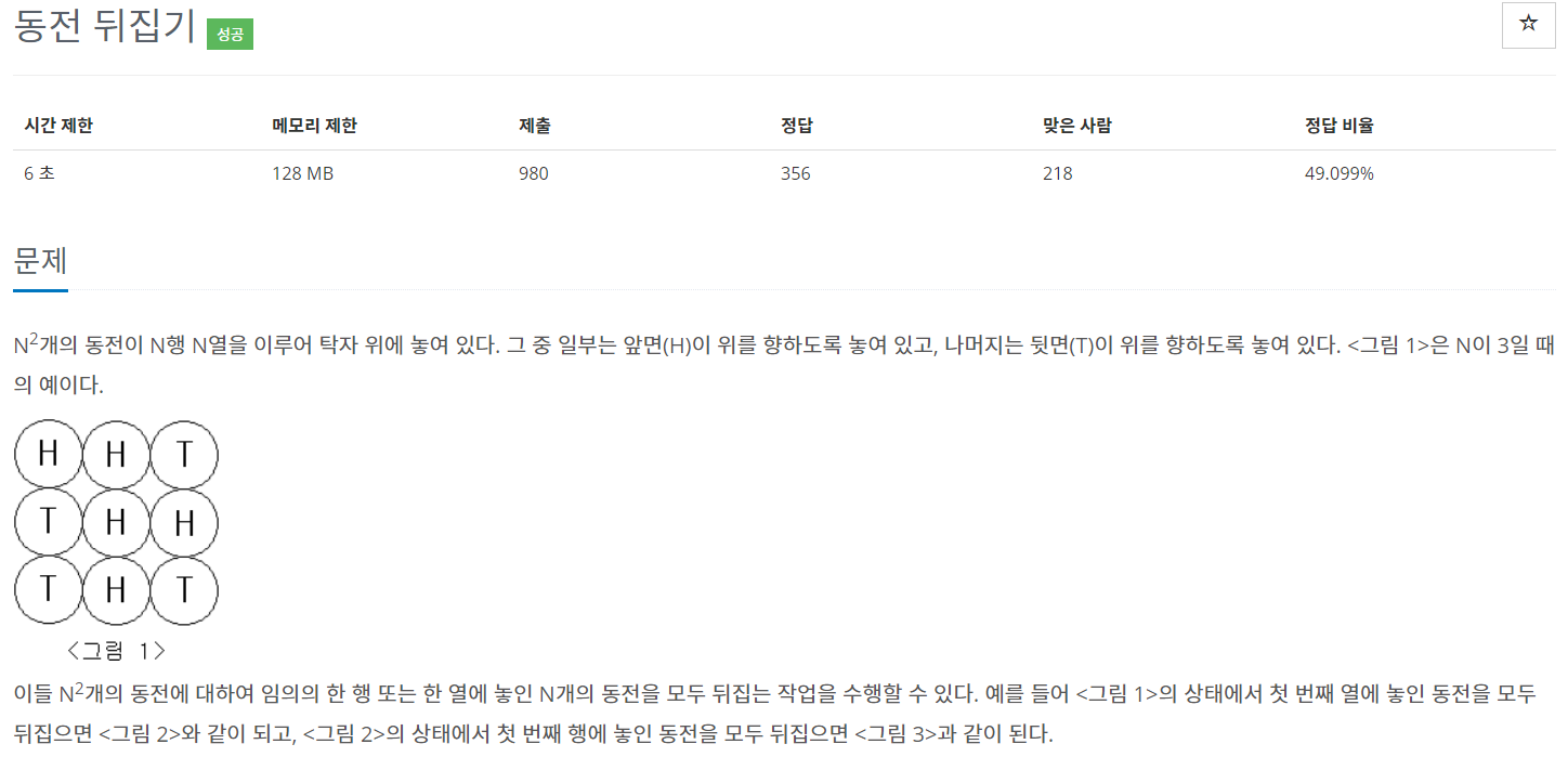 - 각 행/열 별로 동전을 뒤집을 수 있다. 행렬/전구와 스위치 문제와 유사