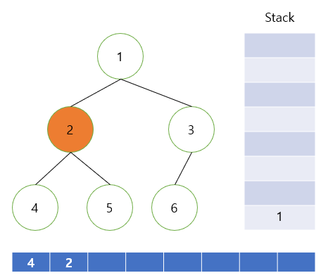 - [3) 스택에서 하나 꺼내고 정답 vector에 넣는다]가 수행되어 Stack에서 2가 꺼내짐과 동시에 ptr은 2를 가리킬 것이다. 그리고 정답 vector에 2가 들어가게 된다.